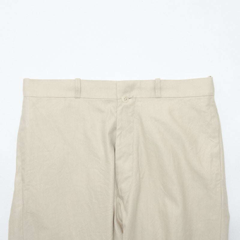 生地を織るとき、糸にテンションをかけすぎることなく、ふんわりと仕立てたチノツイルで作ったパンツです。定番で作っているYAECAのチノクロスに比べて、ソフトな肌触りで、ストレッチ性を感じさせるような、やわらかい仕上がり。